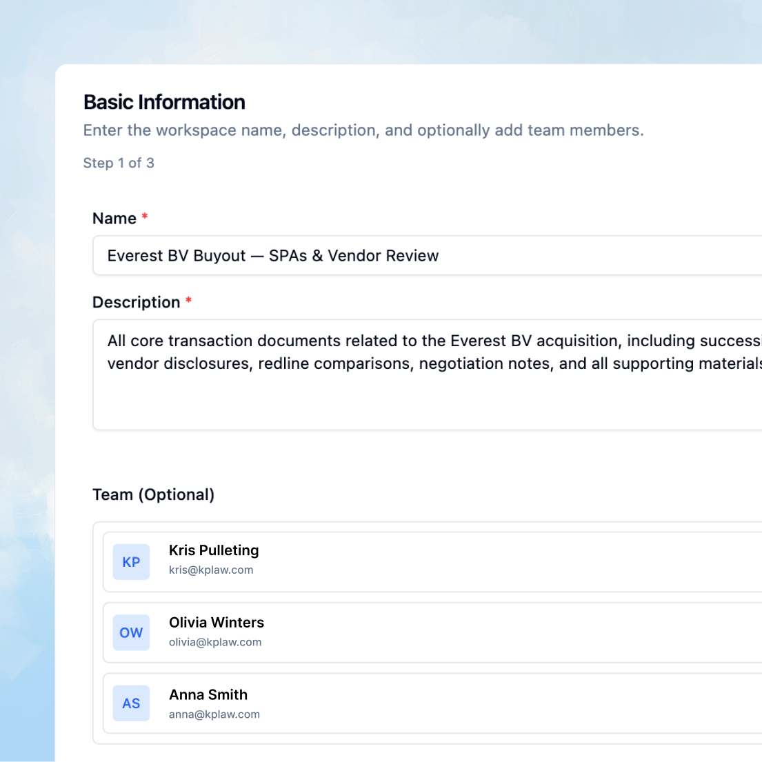 Organize your work by matter, case, or project with dedicated Workspaces. Connect relevant sources, set matter-specific instructions, and collaborate with your team within a defined context.
