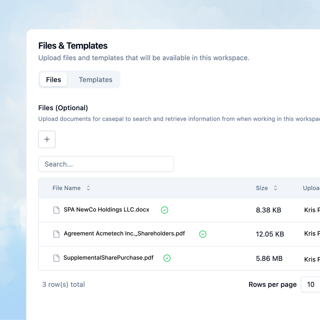 Upload matter-specific files and templates. Workspace Search retrieves exclusively from these sources, integrated with Agentic Legal Research and Library Search.